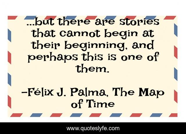 This page presents the quote "...but there are stories that cannot begin at their beginning, and perhaps this is one of them.". Author of this quote is Félix J. Palma, The Map of Time. This quote is about beginning, begin, stories,.