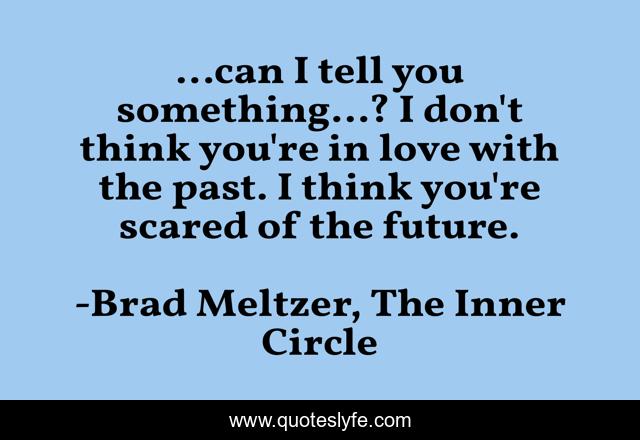 This page presents the quote "...can I tell you something...? I don't think you're in love with the past. I think you're scared of the future.". Author of this quote is Brad Meltzer, The Inner Circle. .