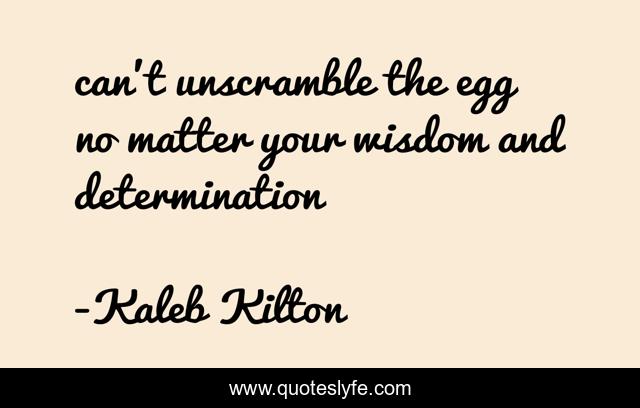 This page presents the quote "can't unscramble the egg no matter your wisdom and determination". Author of this quote is Kaleb Kilton. This quote is about determination, egg, wisdom,.