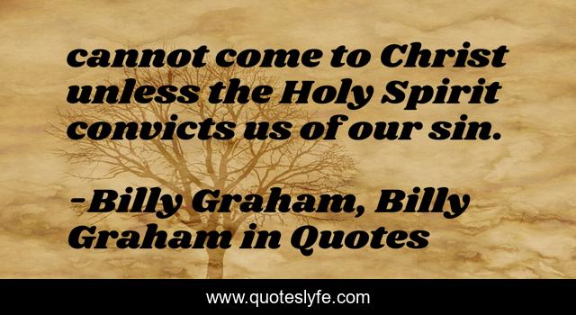 This page presents the quote "cannot come to Christ unless the Holy Spirit convicts us of our sin.". Author of this quote is Billy Graham, Billy Graham in Quotes. This quote is about christ, billy-graham, sin, holy-spirit,.