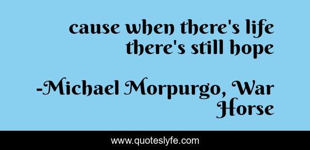 "Michael Morpurgo, War Horse Quotes." Quoteslyfe.com, 2025. Sun. 07 Dec. 2025. <https://www.quoteslyfe.com/quote/cause-when-there-s-life-there-s-5313>.