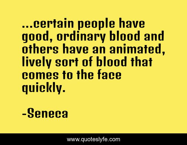 This page presents the quote "...certain people have good, ordinary blood and others have an animated, lively sort of blood that comes to the face quickly.". Author of this quote is Seneca. This quote is about seneca, blushing, blood,.