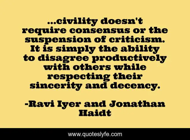 "Ravi Iyer and Jonathan Haidt Quotes." Quoteslyfe.com, 2025. Sat. 06 Dec. 2025. <https://www.quoteslyfe.com/quote/civility-doesn-t-require-consensus-or-the-57364>.