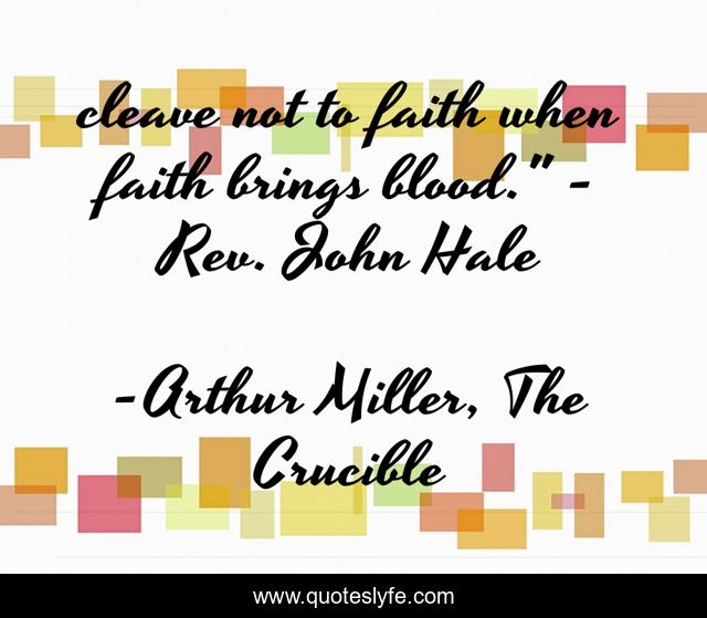 This page presents the quote "cleave not to faith when faith brings blood." - Rev. John Hale". Author of this quote is Arthur Miller, The Crucible. This quote is about faith, arthur-miller, the-crucible, god, john-hale,.