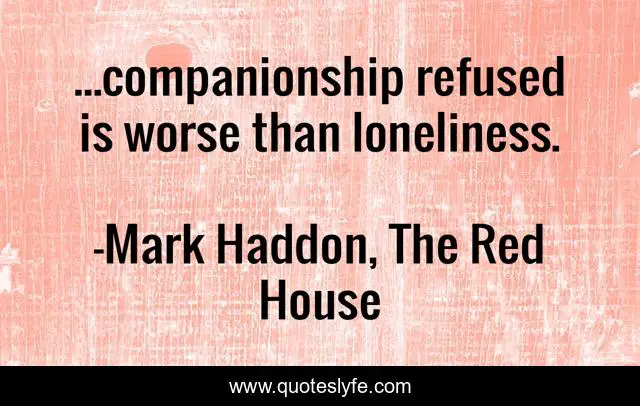 "Mark Haddon, The Red House Quotes." Quoteslyfe.com, 2025. Sat. 06 Dec. 2025. <https://www.quoteslyfe.com/quote/companionship-refused-is-worse-than-loneliness-139279>.