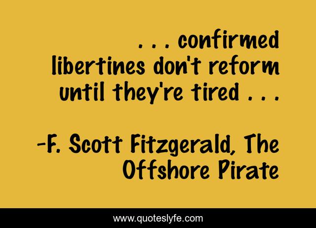 This page presents the quote ". . . confirmed libertines don't reform until they're tired . . .". Author of this quote is F. Scott Fitzgerald, The Offshore Pirate. This quote is about libertine, humor, humour, libertines,.