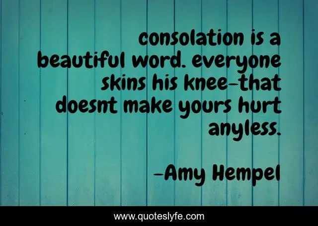 This page presents the quote "consolation is a beautiful word. everyone skins his knee-that doesnt make yours hurt anyless.". Author of this quote is Amy Hempel. .