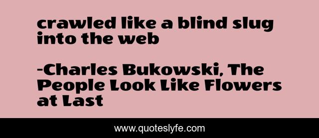 This page presents the quote "crawled like a blind slug into the web". Author of this quote is Charles Bukowski, The People Look Like Flowers at Last. This quote is about bukowski, poetry,.