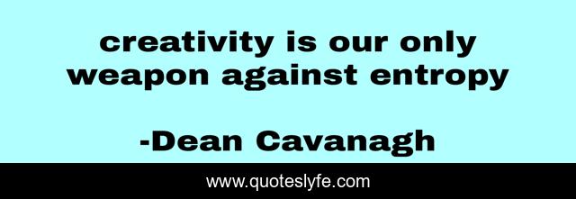 This page presents the quote "creativity is our only weapon against entropy". Author of this quote is Dean Cavanagh. This quote is about creativity, entropy,.