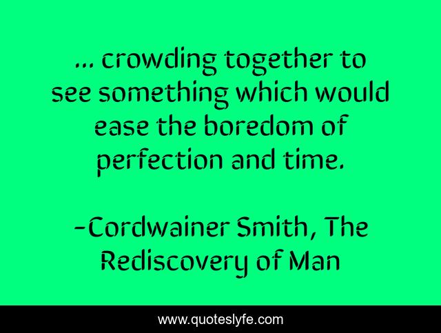 This page presents the quote "... crowding together to see something which would ease the boredom of perfection and time.". Author of this quote is Cordwainer Smith, The Rediscovery of Man. .
