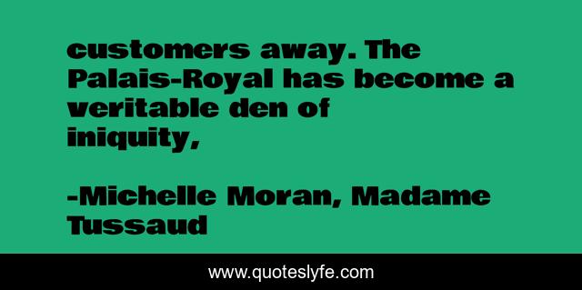 This page presents the quote "customers away. The Palais-Royal has become a veritable den of iniquity, ". Author of this quote is Michelle Moran, Madame Tussaud. .