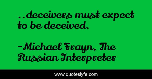 This page presents the quote "..deceivers must expect to be deceived.". Author of this quote is Michael Frayn, The Russian Interpreter. .