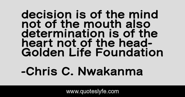 This page presents the quote "decision is of the mind not of the mouth also determination is of the heart not of the head- Golden Life Foundation". Author of this quote is Chris C. Nwakanma. This quote is about enthusiasm, inspirational,.