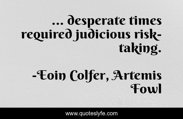 This page presents the quote "... desperate times required judicious risk-taking.". Author of this quote is Eoin Colfer, Artemis Fowl. This quote is about risk, desperation,.