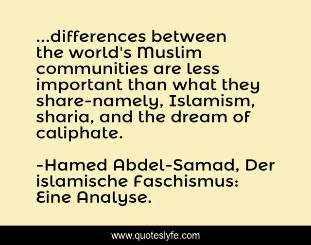 "Hamed Abdel-Samad, Der islamische Faschismus: Eine Analyse. Quotes." Quoteslyfe.com, 2025. Fri. 05 Dec. 2025. <https://www.quoteslyfe.com/quote/differences-between-the-world-s-Muslim-communities-187548>.