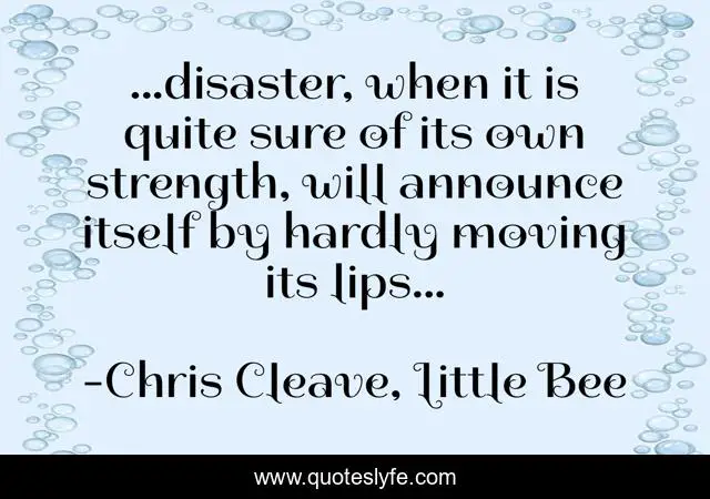 "Chris Cleave, Little Bee Quotes." Quoteslyfe.com, 2025. Sat. 06 Dec. 2025. <https://www.quoteslyfe.com/quote/disaster-when-it-is-quite-sure-of-226269>.