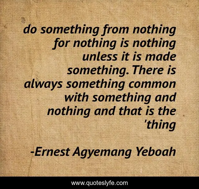 "Ernest Agyemang Yeboah Quotes." Quoteslyfe.com, 2025. Fri. 05 Dec. 2025. <https://www.quoteslyfe.com/quote/do-something-from-nothing-for-nothing-is-192003>.