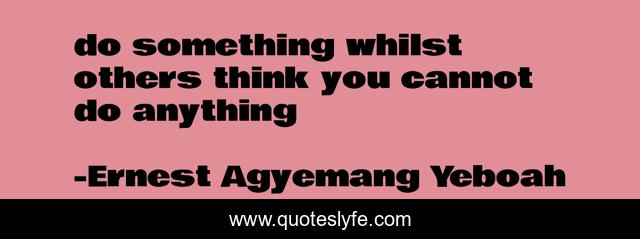 This page presents the quote "do something whilst others think you cannot do anything". Author of this quote is Ernest Agyemang Yeboah. This quote is about life, anything, wisdom, psyche, living-your-best-life, something, self-dignity, life-philosophy, living-life-to-the-fullest,.