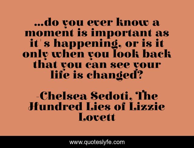 "Chelsea Sedoti, The Hundred Lies of Lizzie Lovett Quotes." Quoteslyfe.com, 2025. Fri. 05 Dec. 2025. <https://www.quoteslyfe.com/quote/do-you-ever-know-a-moment-is-251372>.