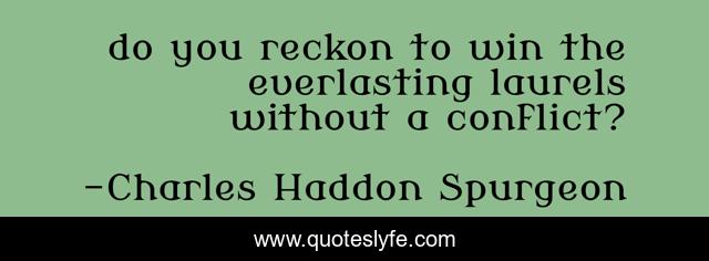This page presents the quote "do you reckon to win the everlasting laurels without a conflict?". Author of this quote is Charles Haddon Spurgeon. .