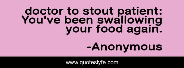 This page presents the quote "doctor to stout patient: You've been swallowing your food again.". Author of this quote is Anonymous. .