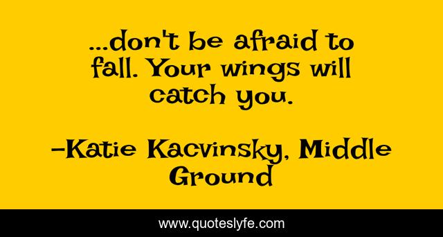 This page presents the quote "...don't be afraid to fall. Your wings will catch you.". Author of this quote is Katie Kacvinsky, Middle Ground. This quote is about faith, fearless,.