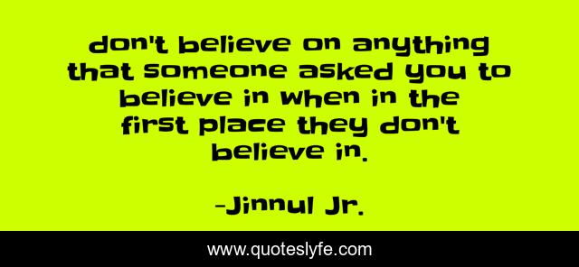 This page presents the quote "don't believe on anything that someone asked you to believe in when in the first place they don't believe in.". Author of this quote is Jinnul Jr.. This quote is about believe, anything,.