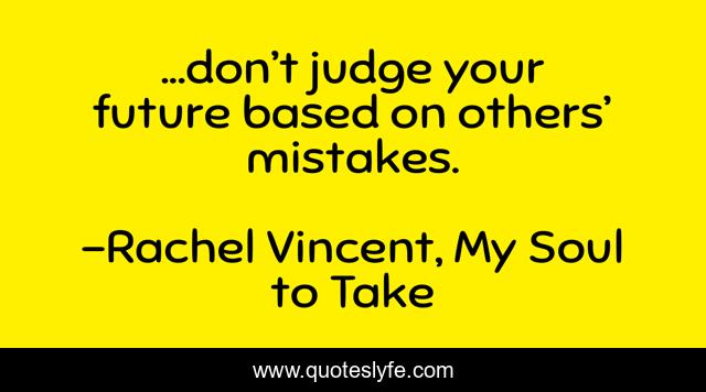 This page presents the quote "...don’t judge your future based on others’ mistakes.". Author of this quote is Rachel Vincent, My Soul to Take. This quote is about enthusiasm, inspirational, life-lessons,.