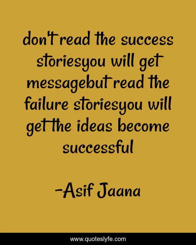 This page presents the quote "don't read the success storiesyou will get messagebut read the failure storiesyou will get the ideas become successful". Author of this quote is Asif Jaana. .