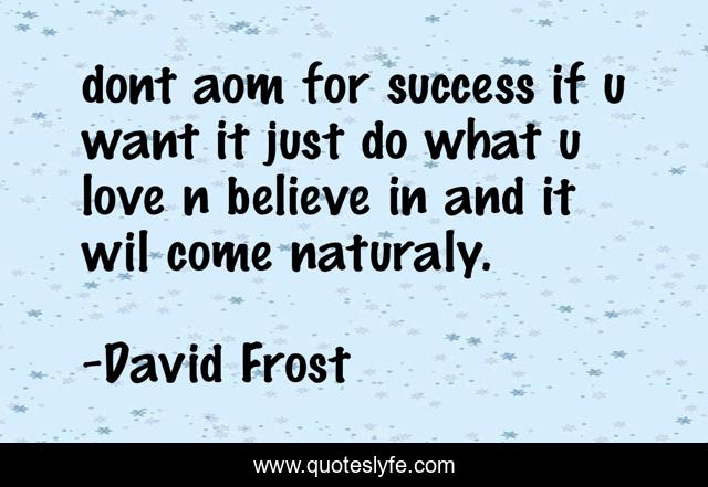 This page presents the quote "dont aom for success if u want it just do what u love n believe in and it wil come naturaly.". Author of this quote is David Frost. This quote is about enthusiasm, inspirational,.