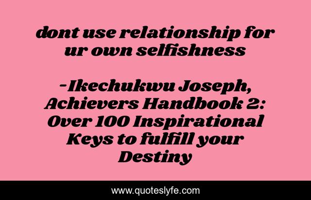 "Ikechukwu Joseph, Achievers Handbook 2: Over 100 Inspirational Keys to fulfill your Destiny Quotes." Quoteslyfe.com, 2025. Sun. 14 Dec. 2025. <https://www.quoteslyfe.com/quote/dont-use-relationship-for-ur-own-selfishness-218109>.