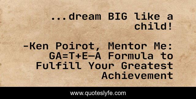 "Ken Poirot, Mentor Me: GA=T+E—A Formula to Fulfill Your Greatest Achievement Quotes." Quoteslyfe.com, 2025. Mon. 08 Dec. 2025. <https://www.quoteslyfe.com/quote/dream-BIG-like-a-child-131235>.