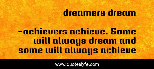 This page presents the quote "dreamers dream". Author of this quote is achievers achieve. Some will always dream and some will always achieve. .