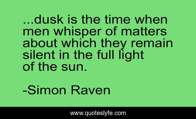 "Simon Raven Quotes." Quoteslyfe.com, 2025. Sat. 06 Dec. 2025. <https://www.quoteslyfe.com/quote/dusk-is-the-time-when-men-whisper-190293>.