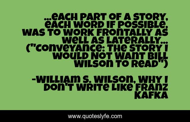 "William S. Wilson, Why I Don't Write Like Franz Kafka Quotes." Quoteslyfe.com, 2025. Fri. 05 Dec. 2025. <https://www.quoteslyfe.com/quote/each-part-of-a-story-each-word-28211>.