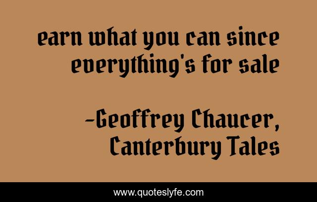 This page presents the quote "earn what you can since everything's for sale". Author of this quote is Geoffrey Chaucer, Canterbury Tales. This quote is about opportunity, vocation, profession, democracy, desperation,.