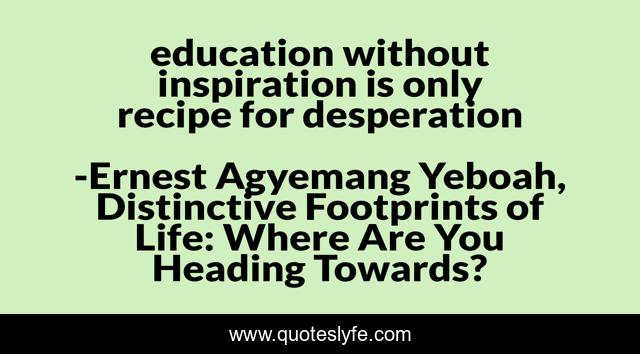 "Ernest Agyemang Yeboah, Distinctive Footprints of Life: Where Are You Heading Towards? Quotes." Quoteslyfe.com, 2025. Fri. 05 Dec. 2025. <https://www.quoteslyfe.com/quote/education-without-inspiration-is-only-recipe-for-207824>.