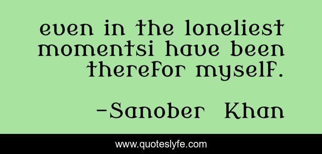 This page presents the quote "even in the loneliest momentsi have been therefor myself.". Author of this quote is Sanober Khan. This quote is about lonely, loneliness, poetry, love-yourself, self-empowerment, inspirational, self-help, enthusiasm, self-esteem,.