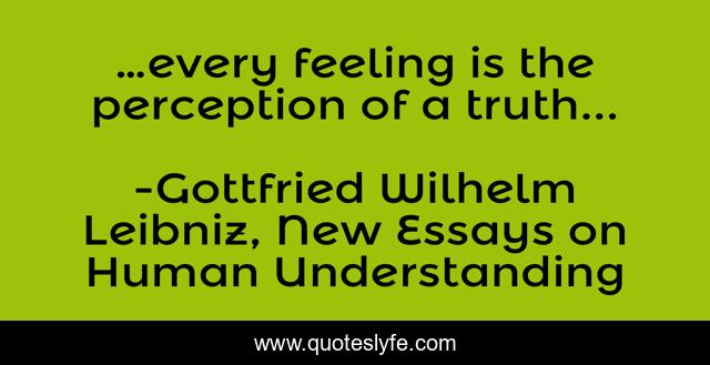 This page presents the quote "…every feeling is the perception of a truth...". Author of this quote is Gottfried Wilhelm Leibniz, New Essays on Human Understanding. This quote is about philosophy-of-mind, epistemology, philosophy, thought, metaphysics,.