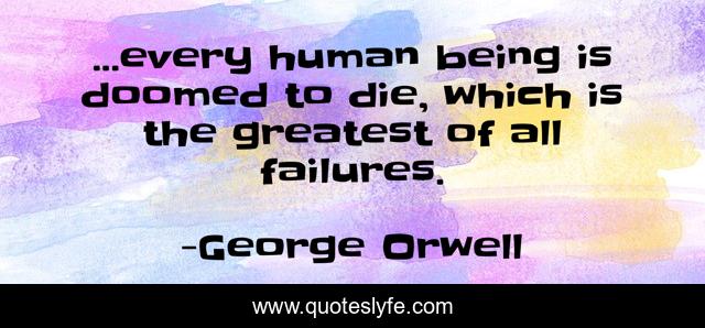 This page presents the quote "...every human being is doomed to die, which is the greatest of all failures.". Author of this quote is George Orwell. This quote is about die, doom, human, death, failure,.