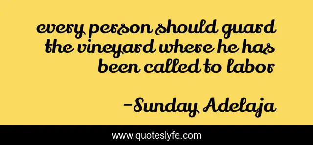 This page presents the quote "every person should guard the vineyard where he has been called to labor". Author of this quote is Sunday Adelaja. This quote is about vineyard, person, guard, called, labor,.