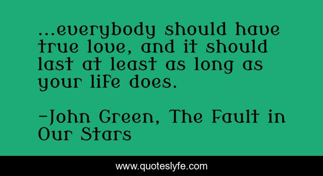 This page presents the quote "...everybody should have true love, and it should last at least as long as your life does.". Author of this quote is John Green, The Fault in Our Stars. This quote is about true-love, life, love, affection,.