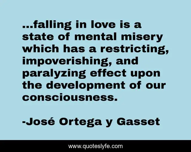 This page presents the quote "…falling in love is a state of mental misery which has a restricting, impoverishing, and paralyzing effect upon the development of our consciousness.". Author of this quote is José Ortega y Gasset. This quote is about love, consciousness, affection, misery,.