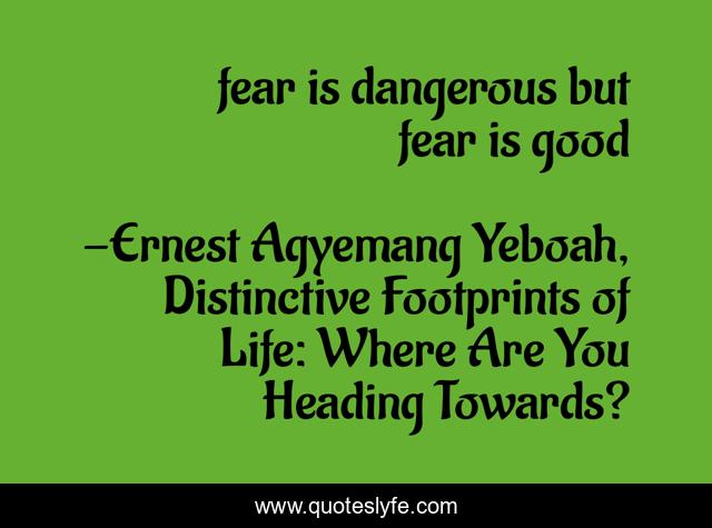 "Ernest Agyemang Yeboah, Distinctive Footprints of Life: Where Are You Heading Towards? Quotes." Quoteslyfe.com, 2025. Fri. 05 Dec. 2025. <https://www.quoteslyfe.com/quote/fear-is-dangerous-but-fear-is-good-99022>.