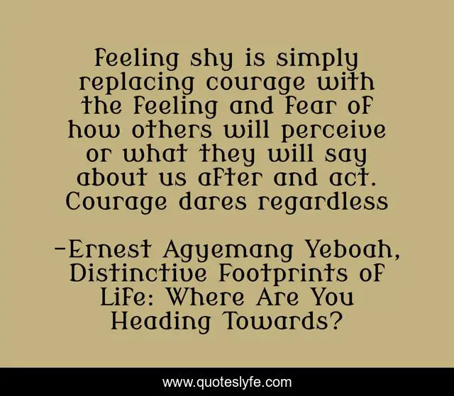 "Ernest Agyemang Yeboah, Distinctive Footprints of Life: Where Are You Heading Towards? Quotes." Quoteslyfe.com, 2025. Fri. 05 Dec. 2025. <https://www.quoteslyfe.com/quote/feeling-shy-is-simply-replacing-courage-with-92222>.