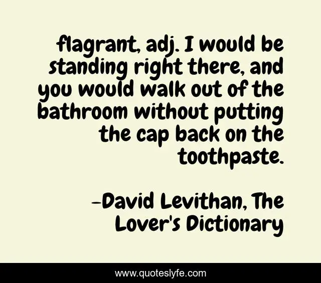 This page presents the quote "flagrant, adj. I would be standing right there, and you would walk out of the bathroom without putting the cap back on the toothpaste.". Author of this quote is David Levithan, The Lover's Dictionary. This quote is about relationships, love, affection,.