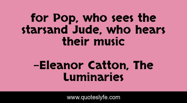 This page presents the quote "for Pop, who sees the starsand Jude, who hears their music". Author of this quote is Eleanor Catton, The Luminaries. This quote is about music, beauty, stars,.