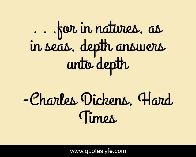 This page presents the quote ". . .for in natures, as in seas, depth answers unto depth". Author of this quote is Charles Dickens, Hard Times. .
