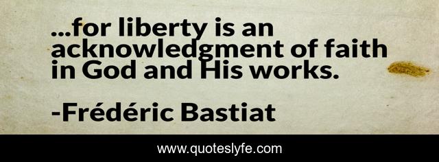 This page presents the quote "...for liberty is an acknowledgment of faith in God and His works.". Author of this quote is Frédéric Bastiat. This quote is about faith, liberty, god,.