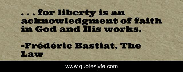 This page presents the quote ". . . for liberty is an acknowledgment of faith in God and His works.". Author of this quote is Frédéric Bastiat, The Law. This quote is about faith, liberty, god,.